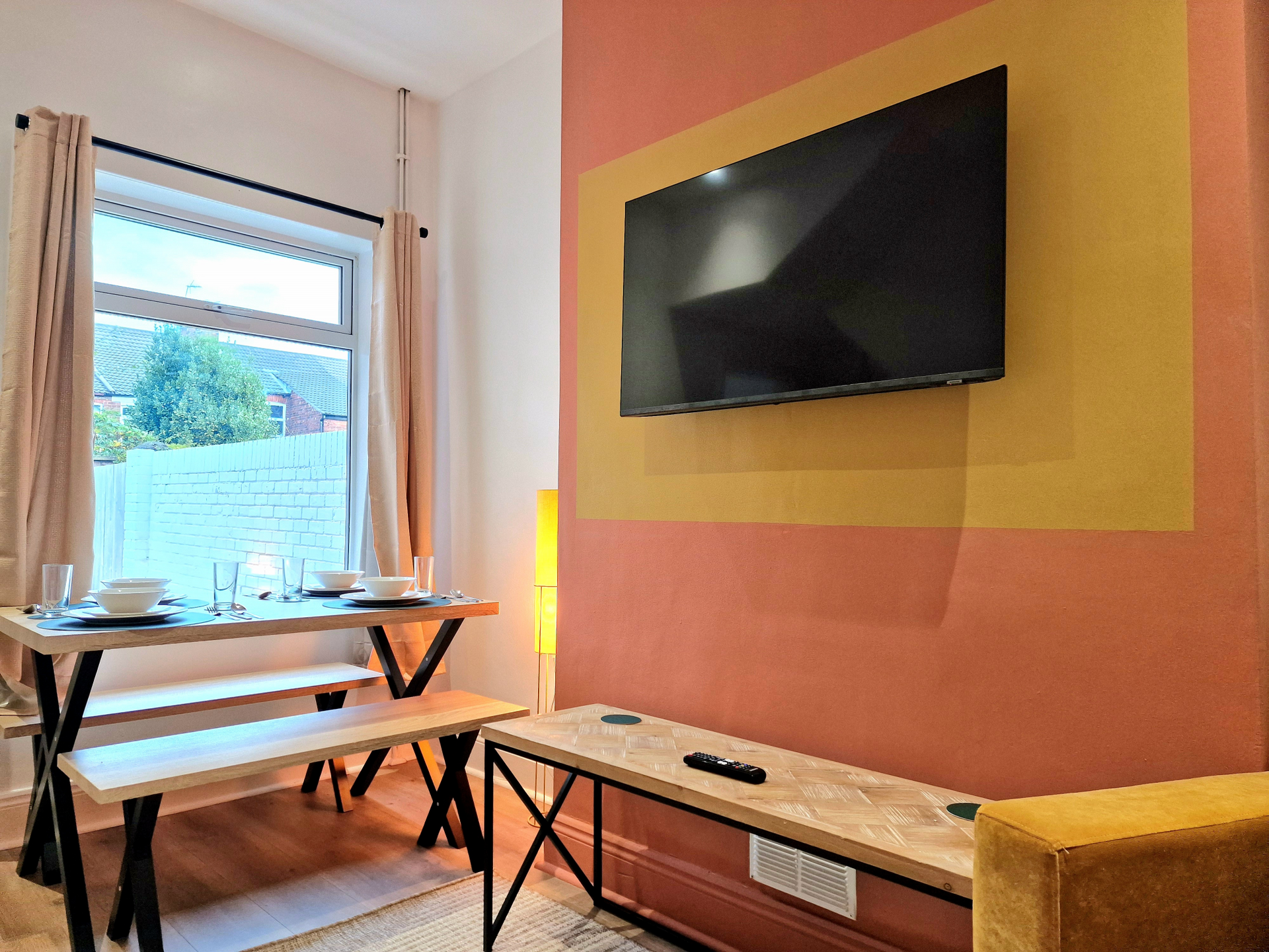 ✨ Lounge / Living Room: Our thoughtfully planned and furnished living room/diner is cozy and stylish. You've got a flat screen TV with Netflix ready for you, large comfy sofa, chairs and a 4 seater dining table. Beautiful design and decor throughout