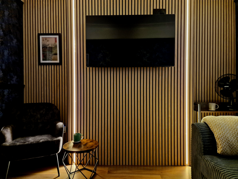 Our super stylish 3 bedroom home has been lovingly and thoughtfully renovated to an exceptionally high standard, with solid oak doors, sound proof oak panelling, 2 large Samsung smart TVs, mood lighting and much more.