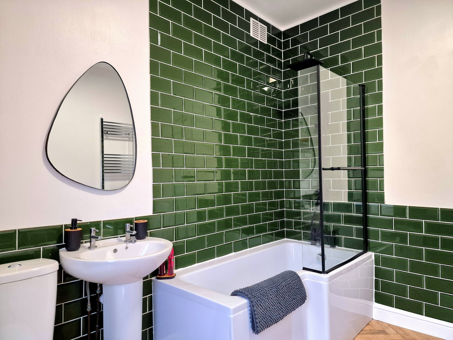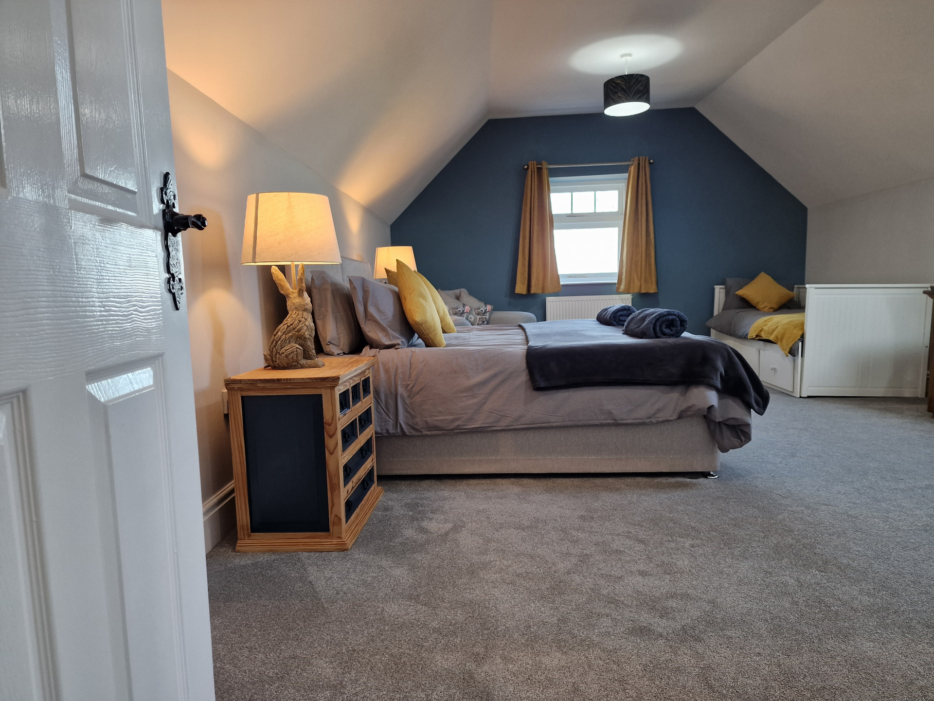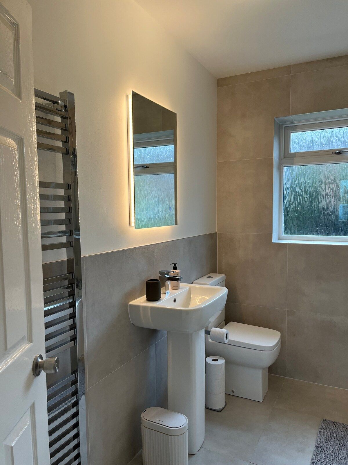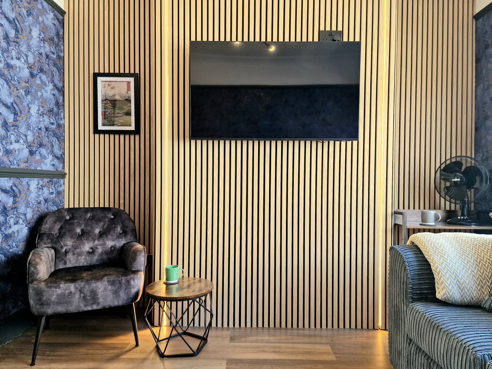 Enjoy a luxury, stylish getaway in this one-off 3 bedroom home with front and back yards and on-street parking. Our super-stylish 3-bedroom home has been lovingly and thoughtfully renovated to an exceptionally high standard, with solid oak doors, sound proof oak panelling, 2 large Samsung smart TVs, mood lighting and much more.