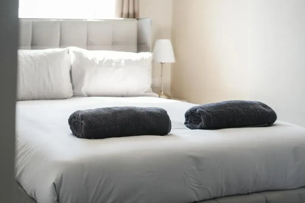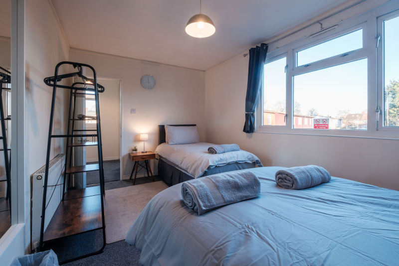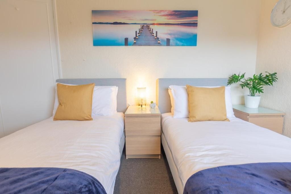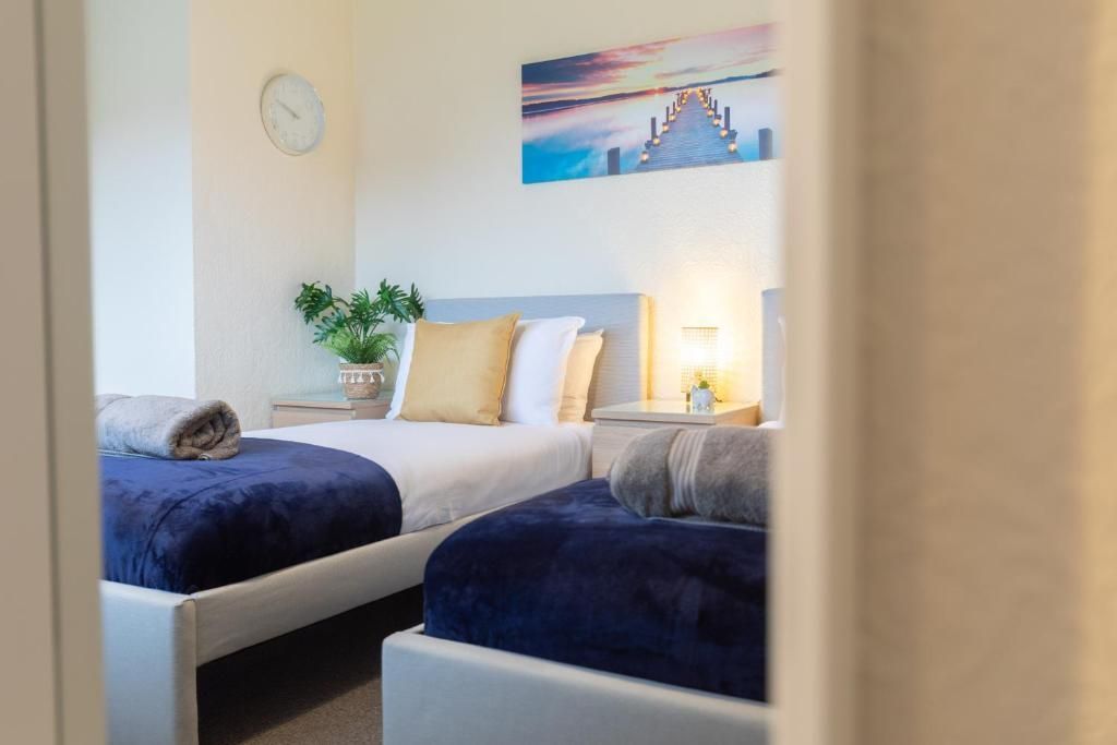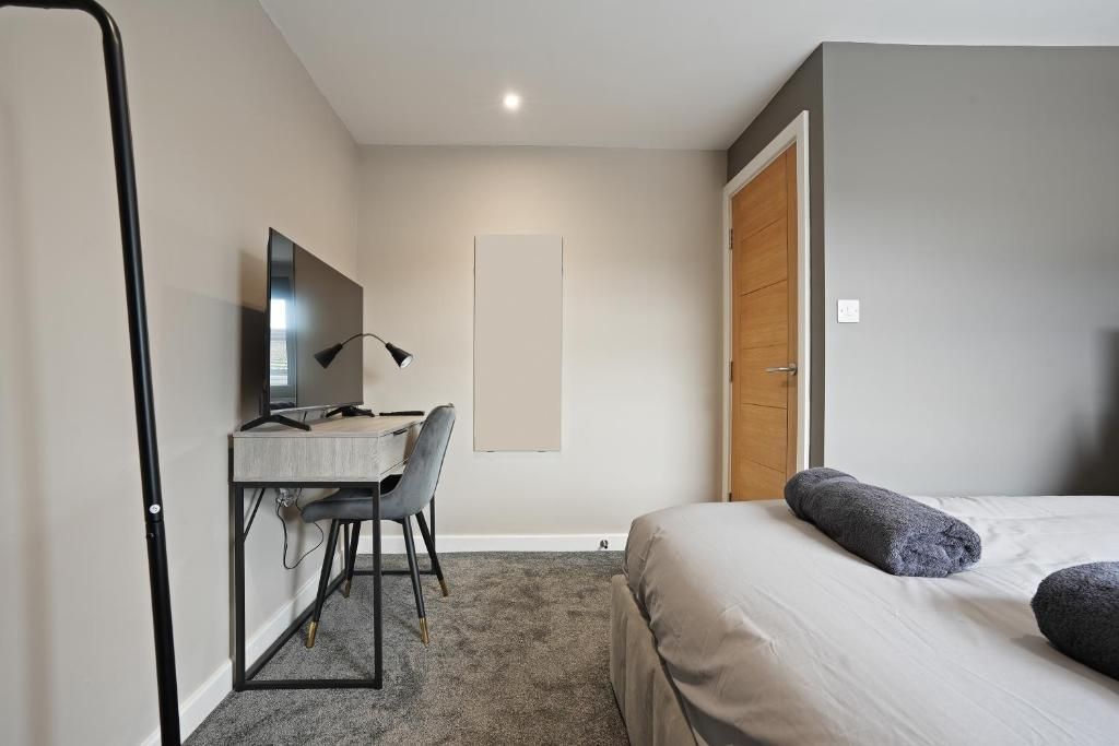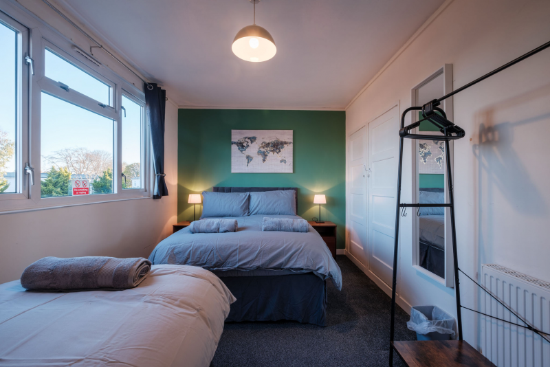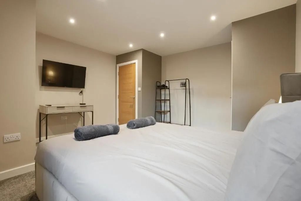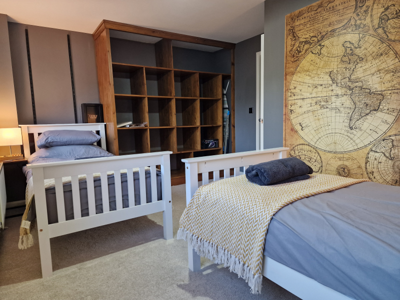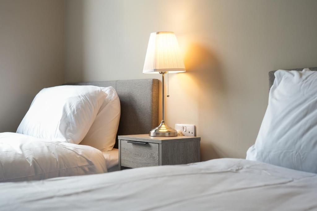 Our 2 Bed Deluxe apartment is on the ground floor at the rear of the building. 2 full bedrooms with desks and access to our gated carpark, secure for your vehicle.