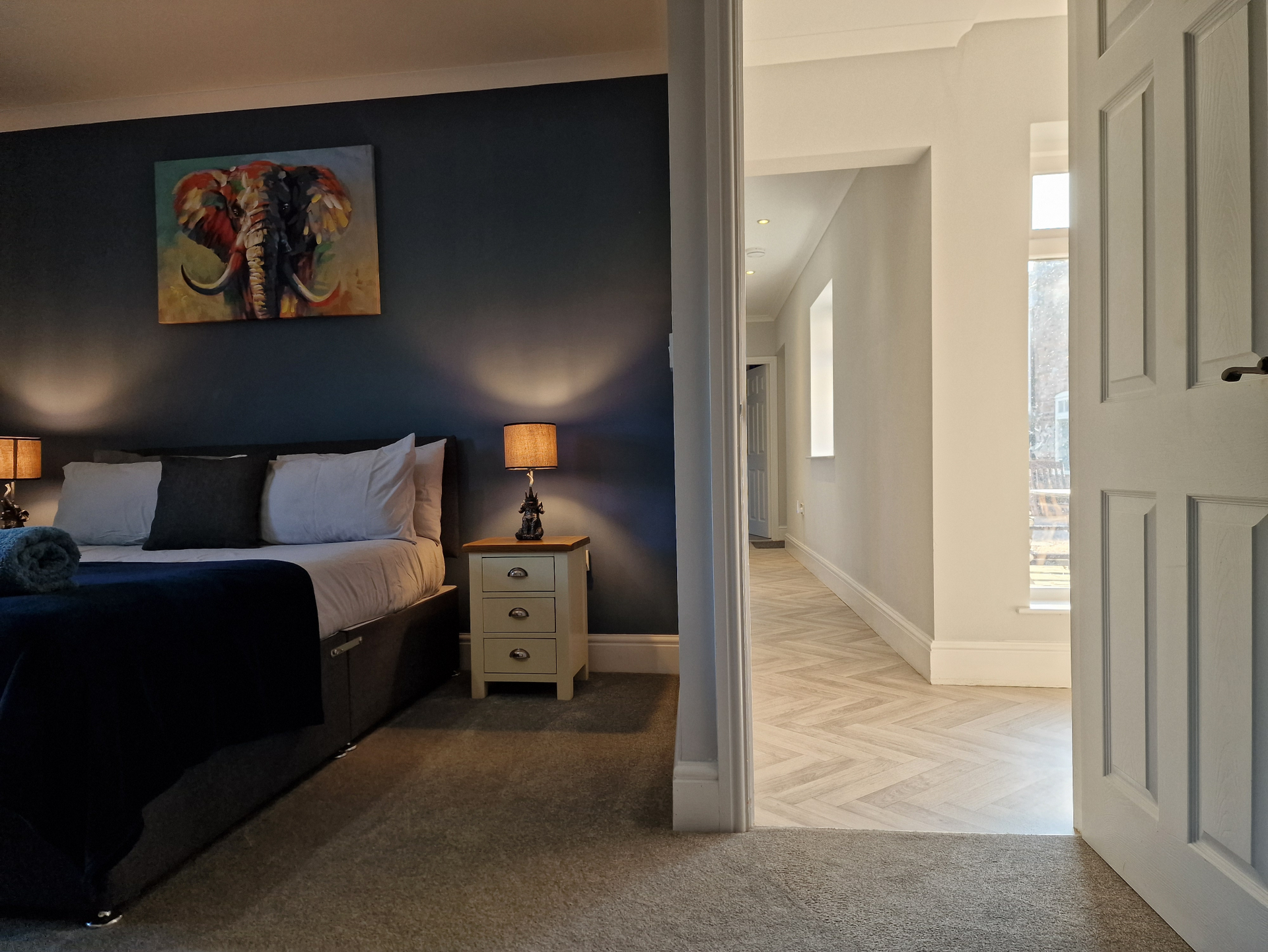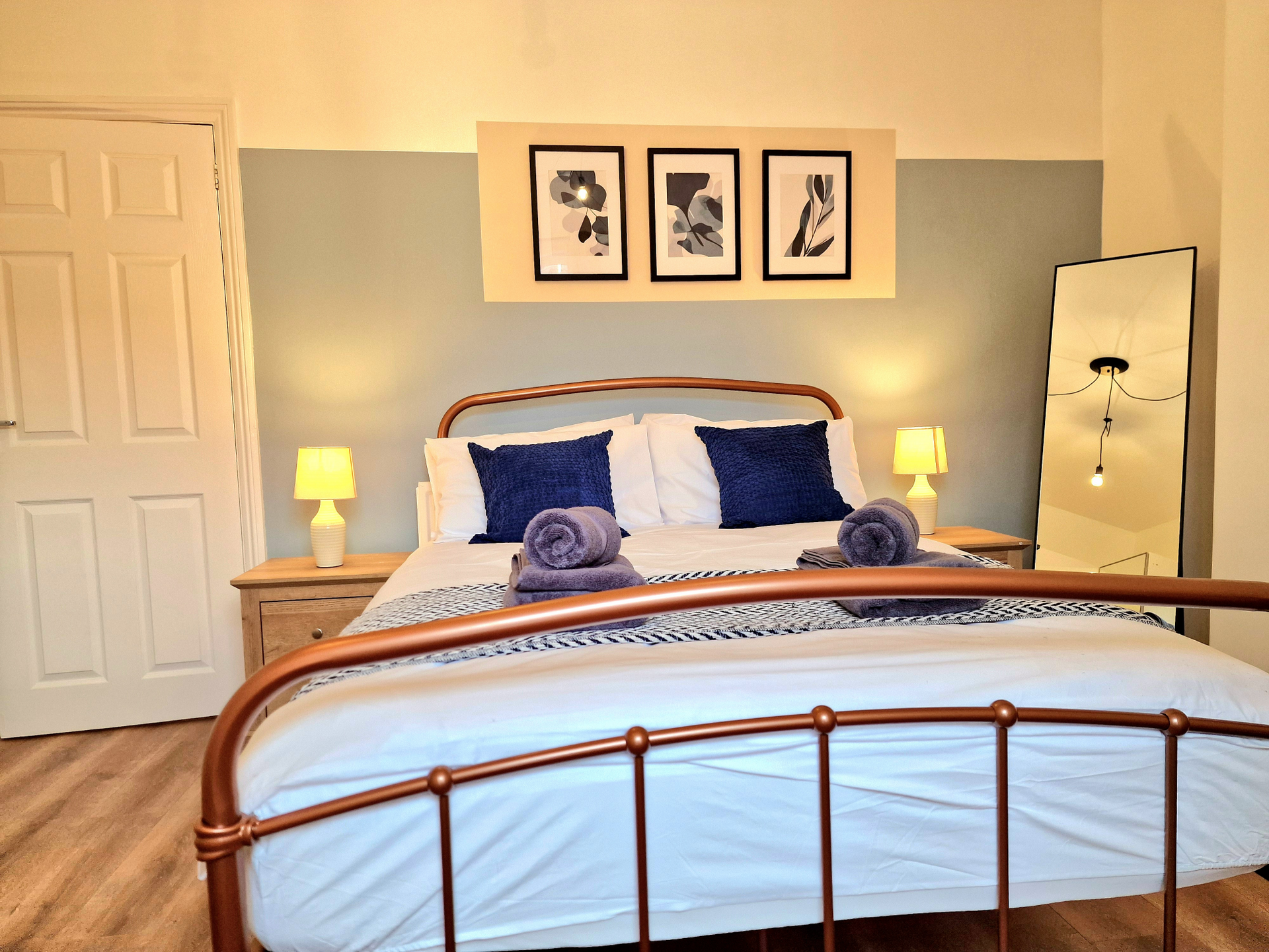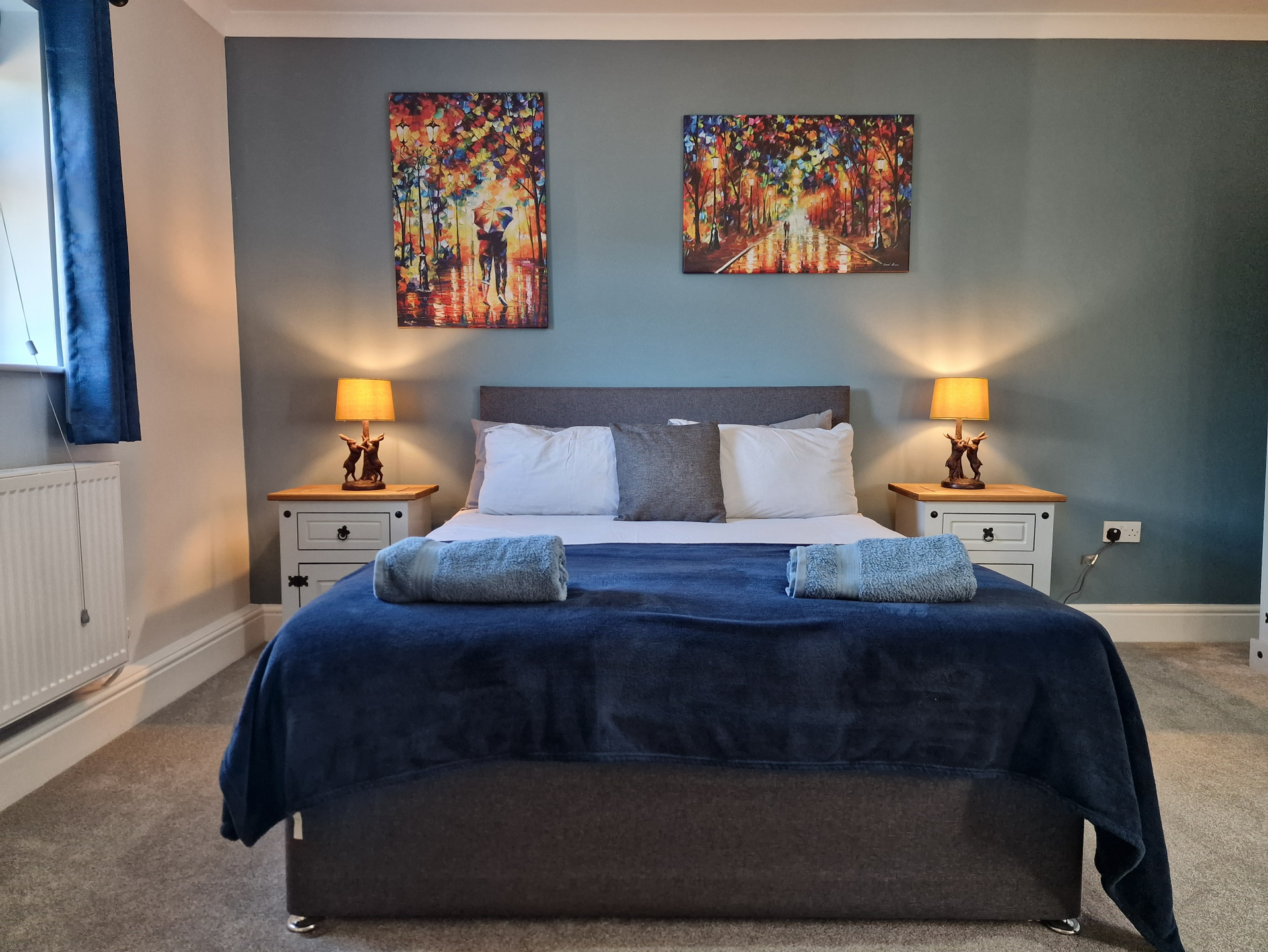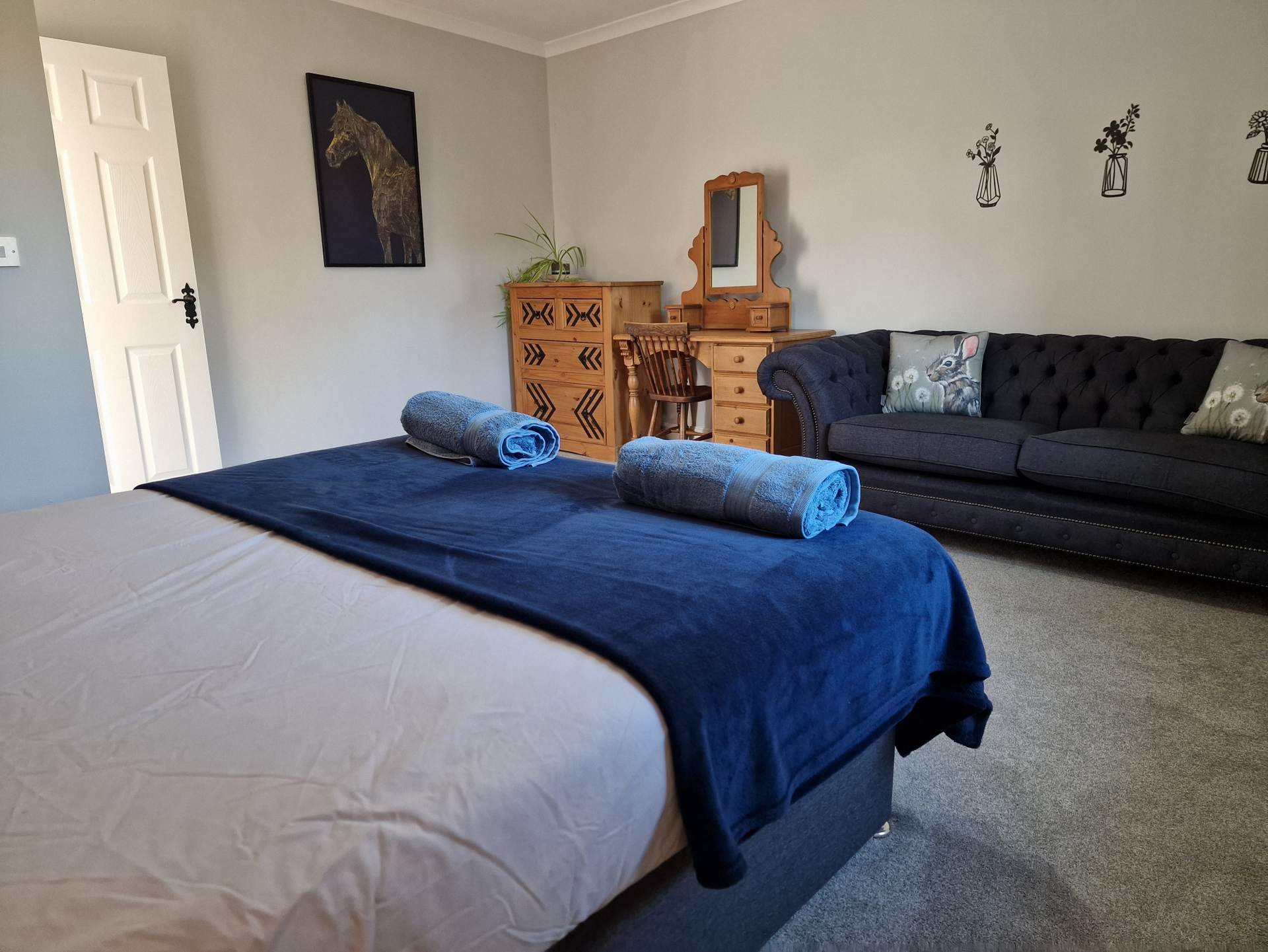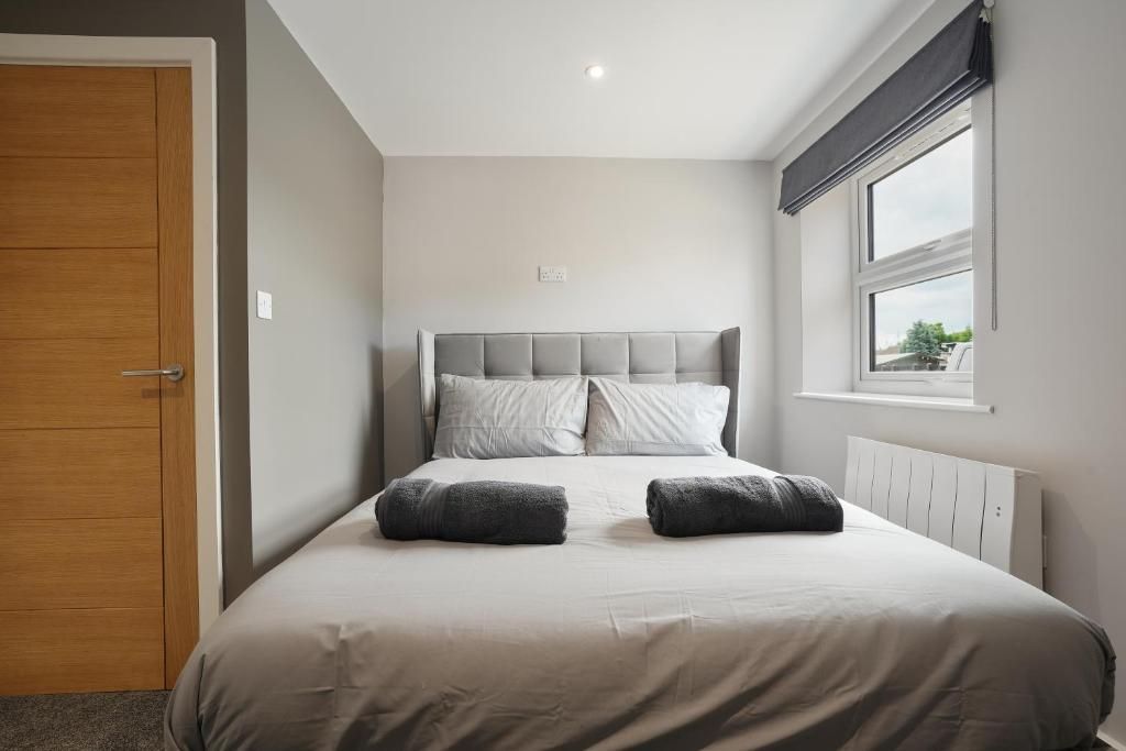 Our 2 Bed Deluxe apartment is on the ground floor at the rear of the building. 2 full bedrooms with desks and access to our gated carpark, secure for your vehicle.