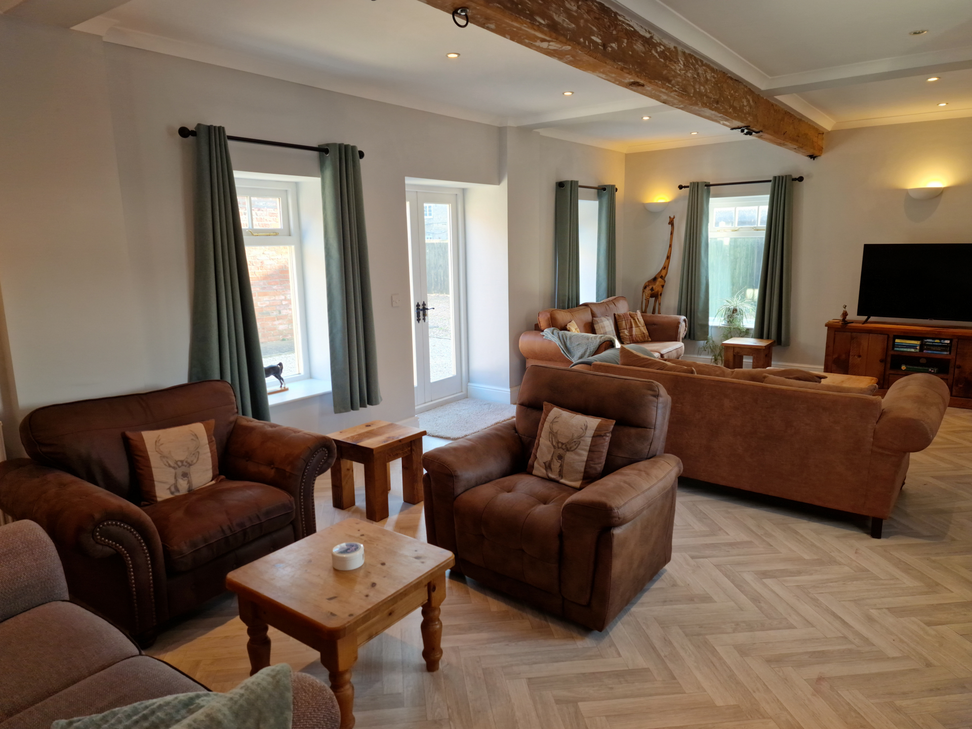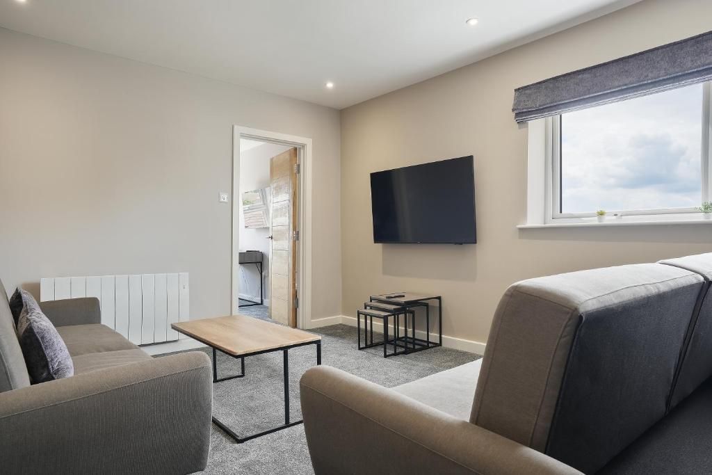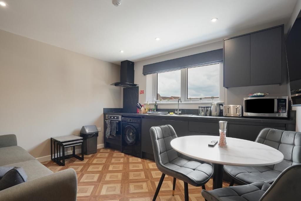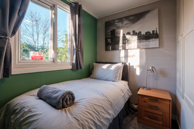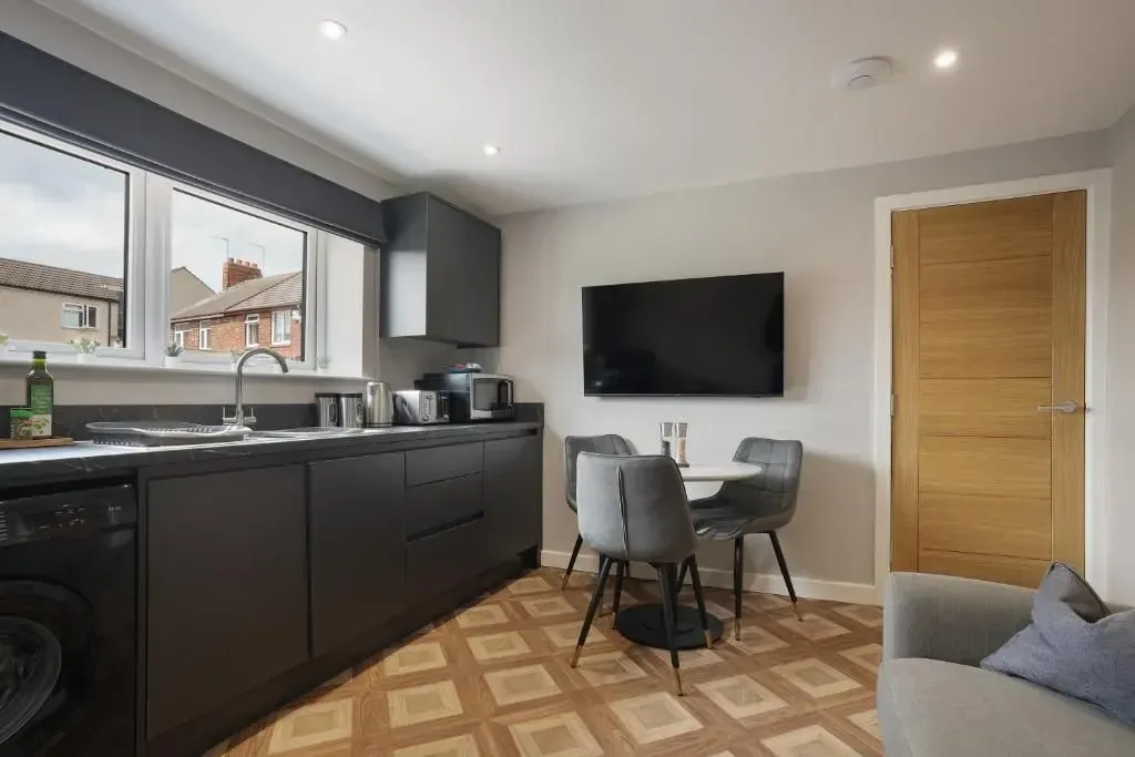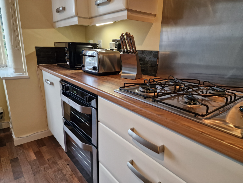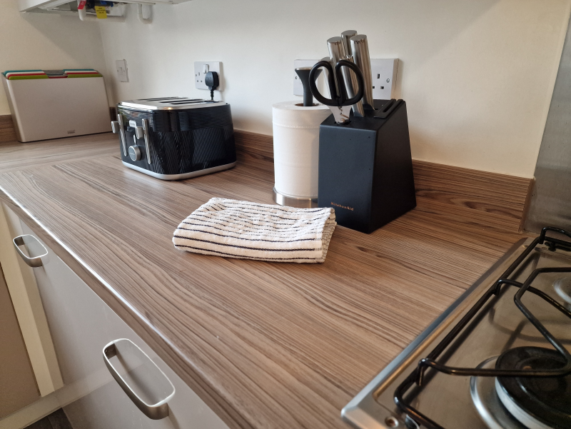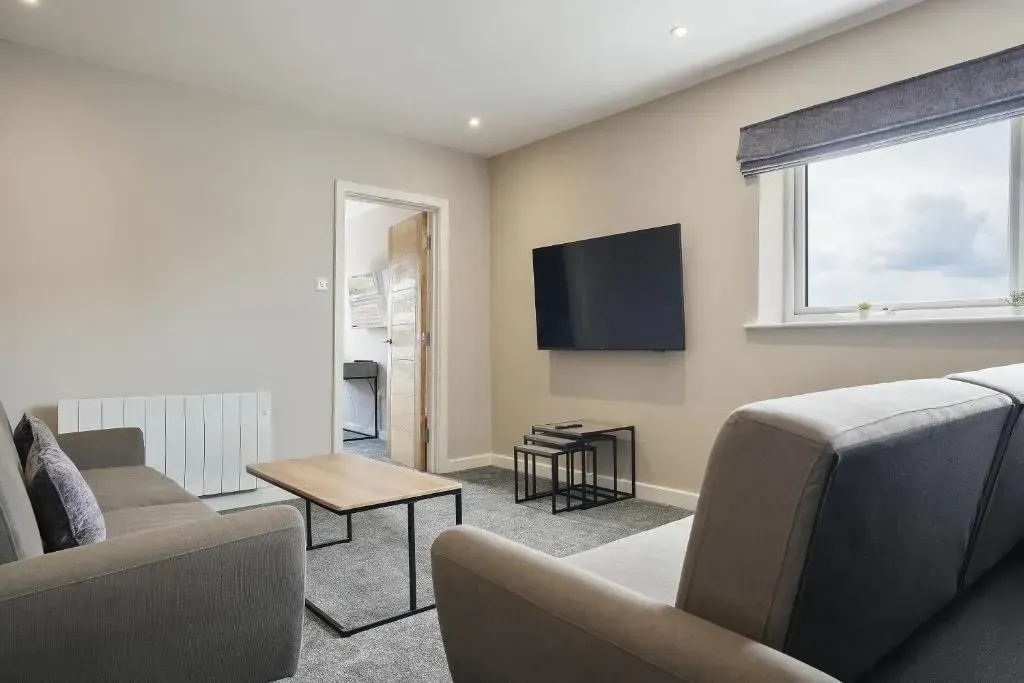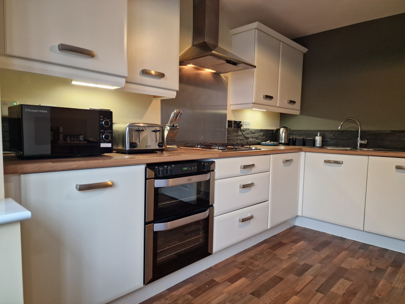 Our 2 bed Deluxe apartment is on the ground floor, with an open plan seating and kitchen area. Secure, private as standard and perfect for contractors.