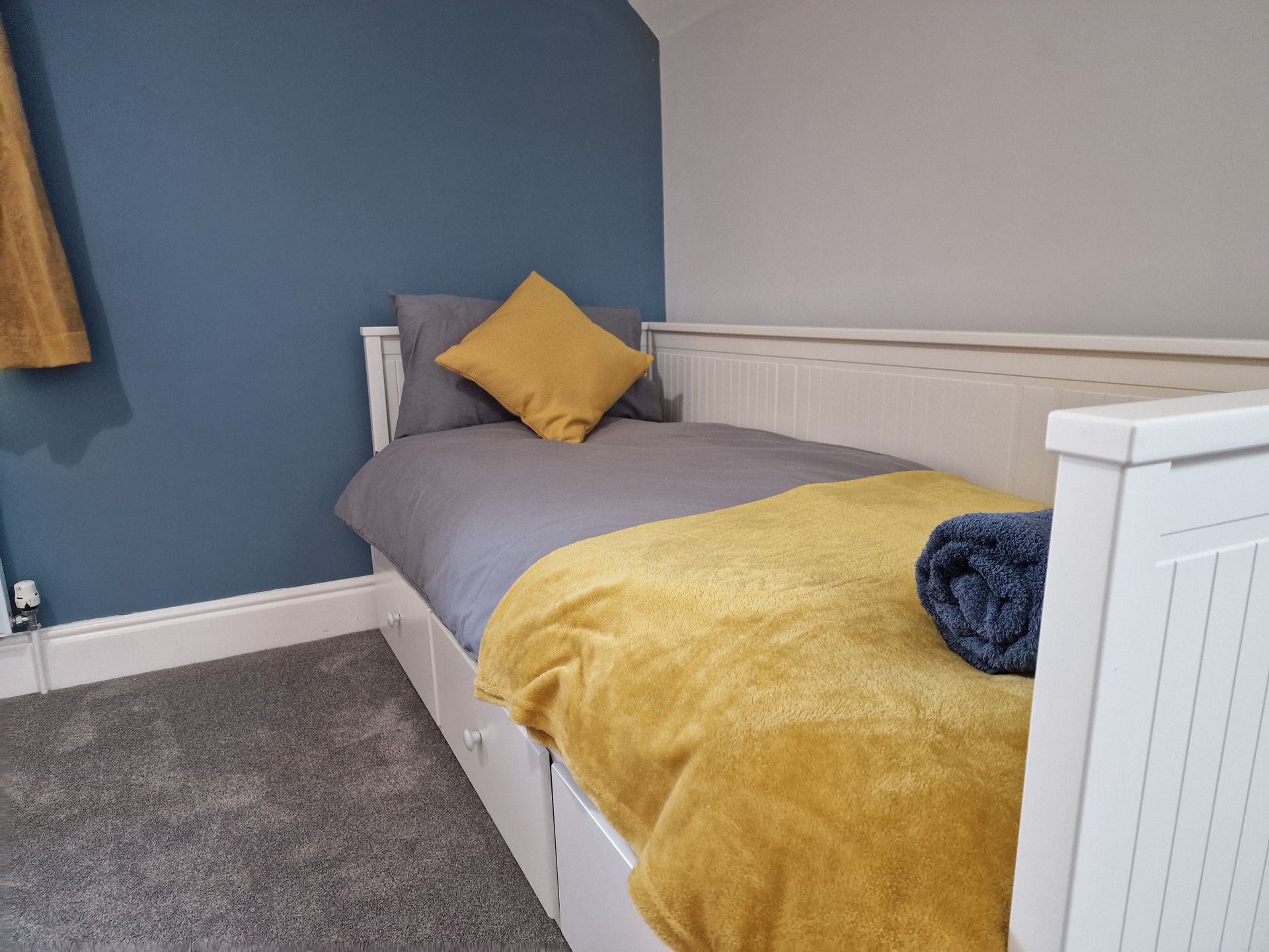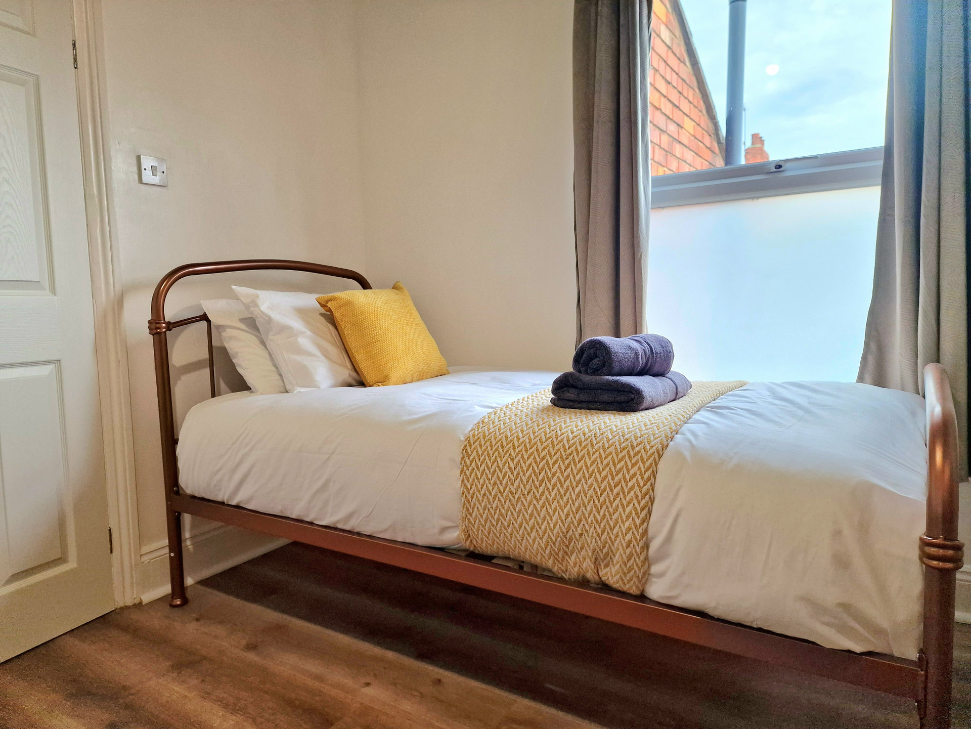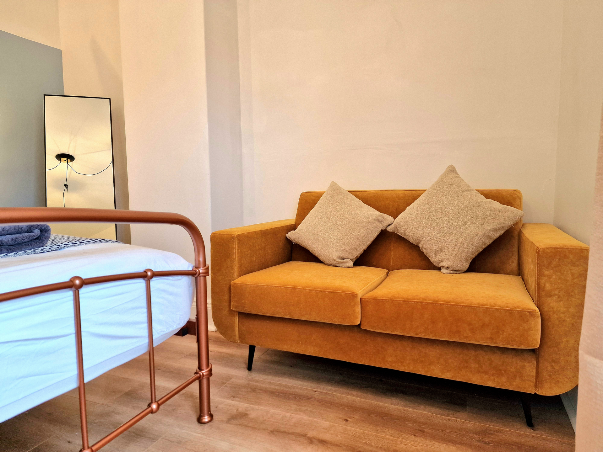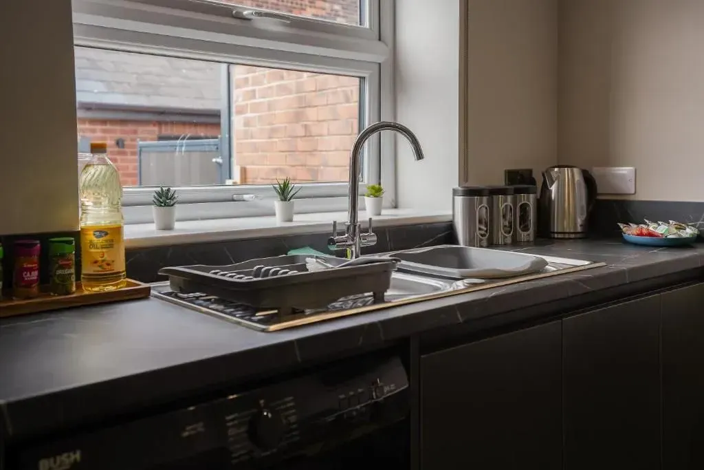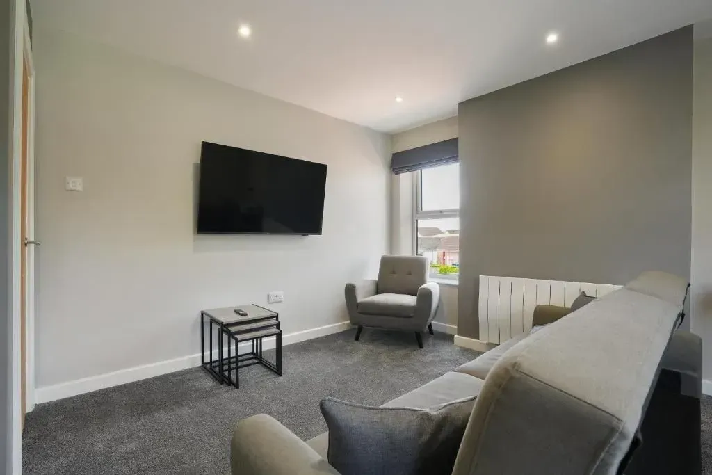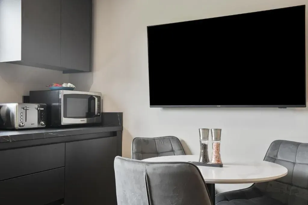 Our Premium Single room apartment is on the 1st floor and one of our most spacious. A large living and dining space, with 2 big sofas, you won't be living on top of anyone else. Secure parking as standard.