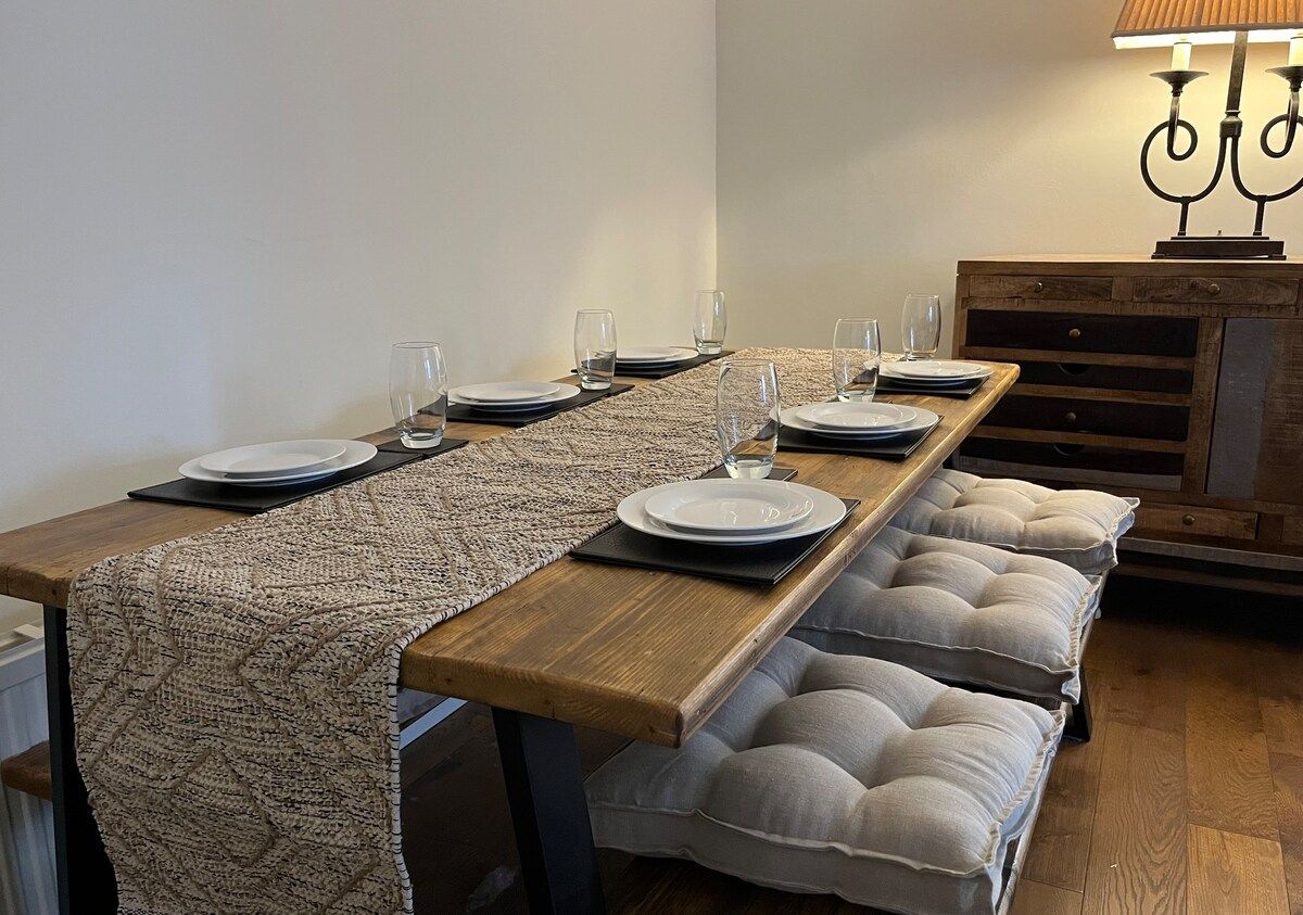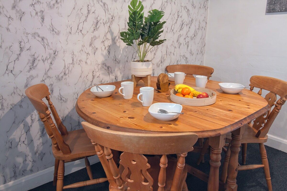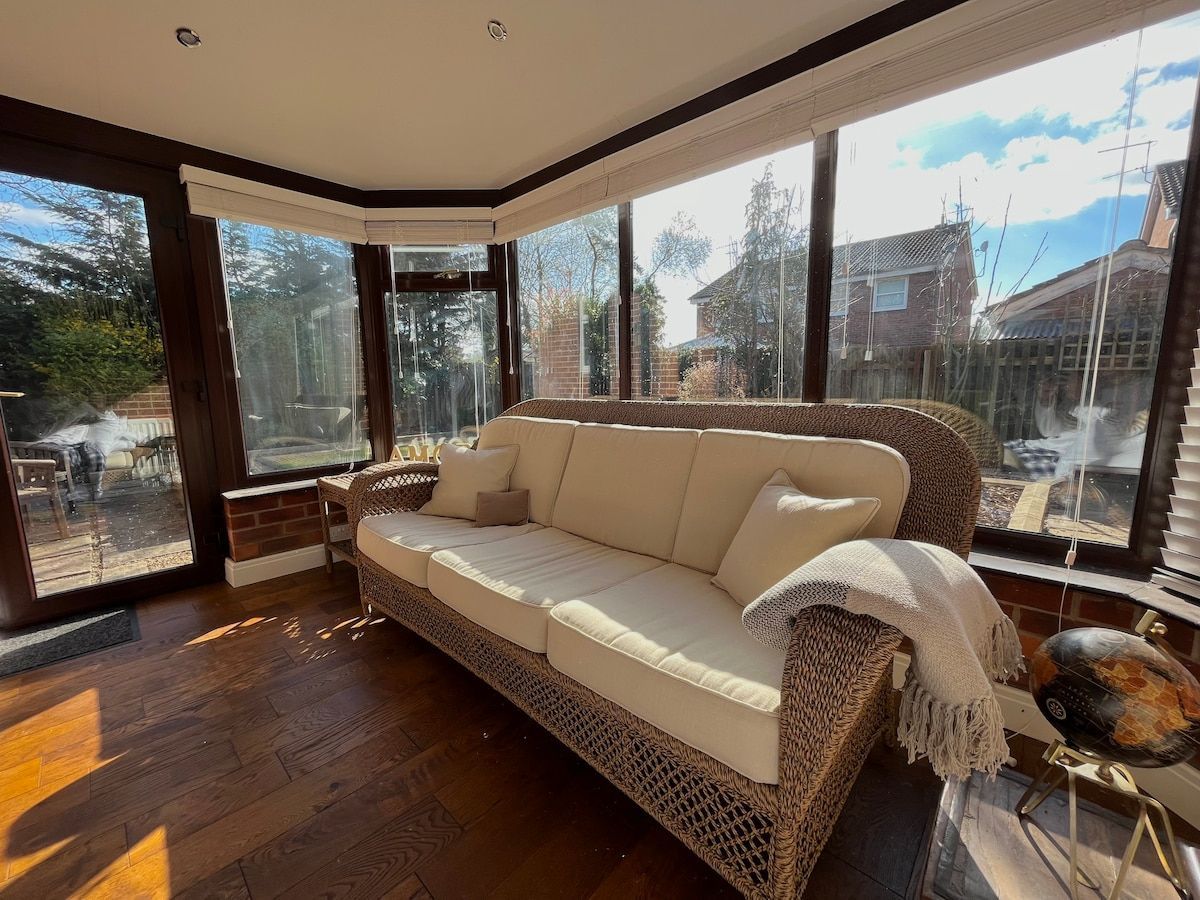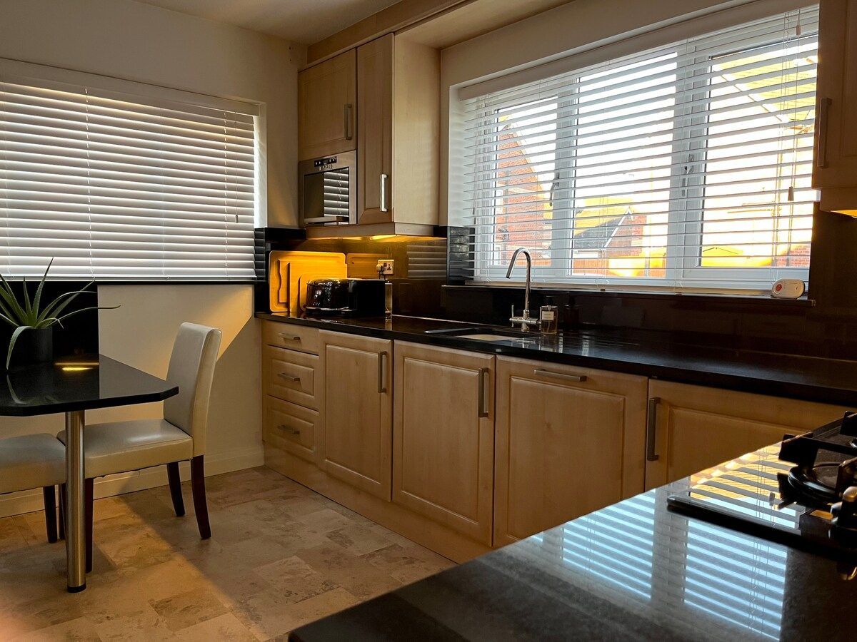 This 3 bedroom bungalow is a guest favorite, with is really good quality solid furniture and tasteful decor, it feels like a home as soon as you walk in. It's in a quiet area with plenty of parking, including a private drive way + private back garden.