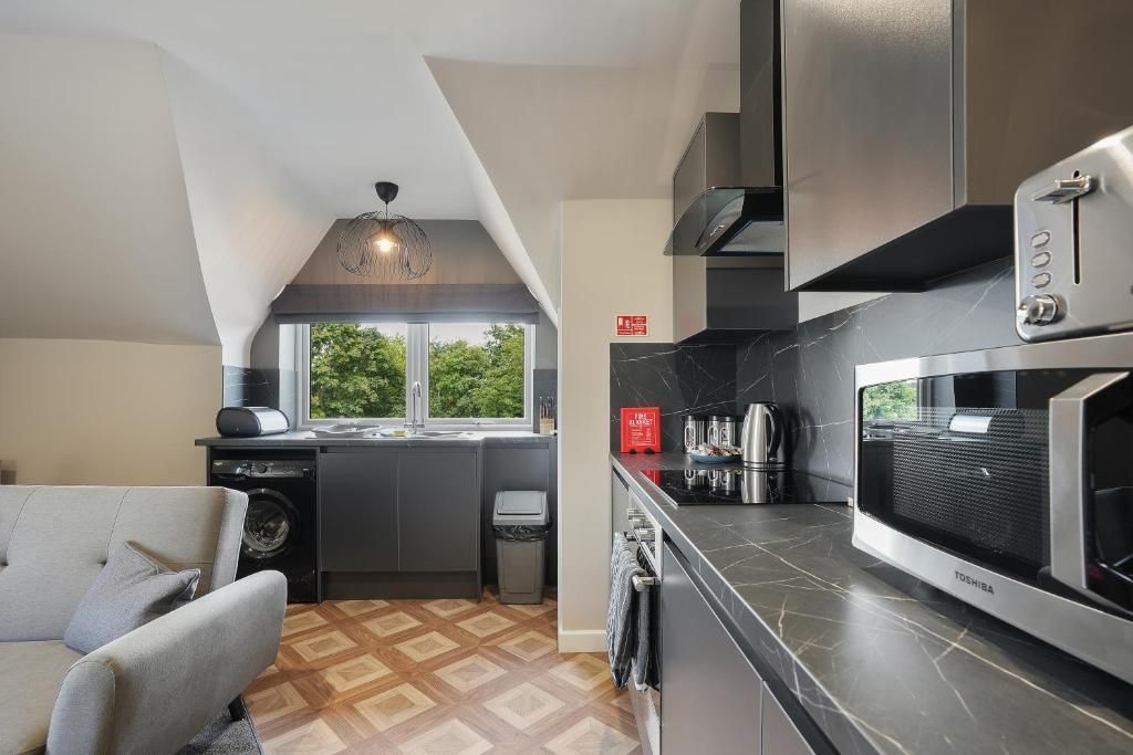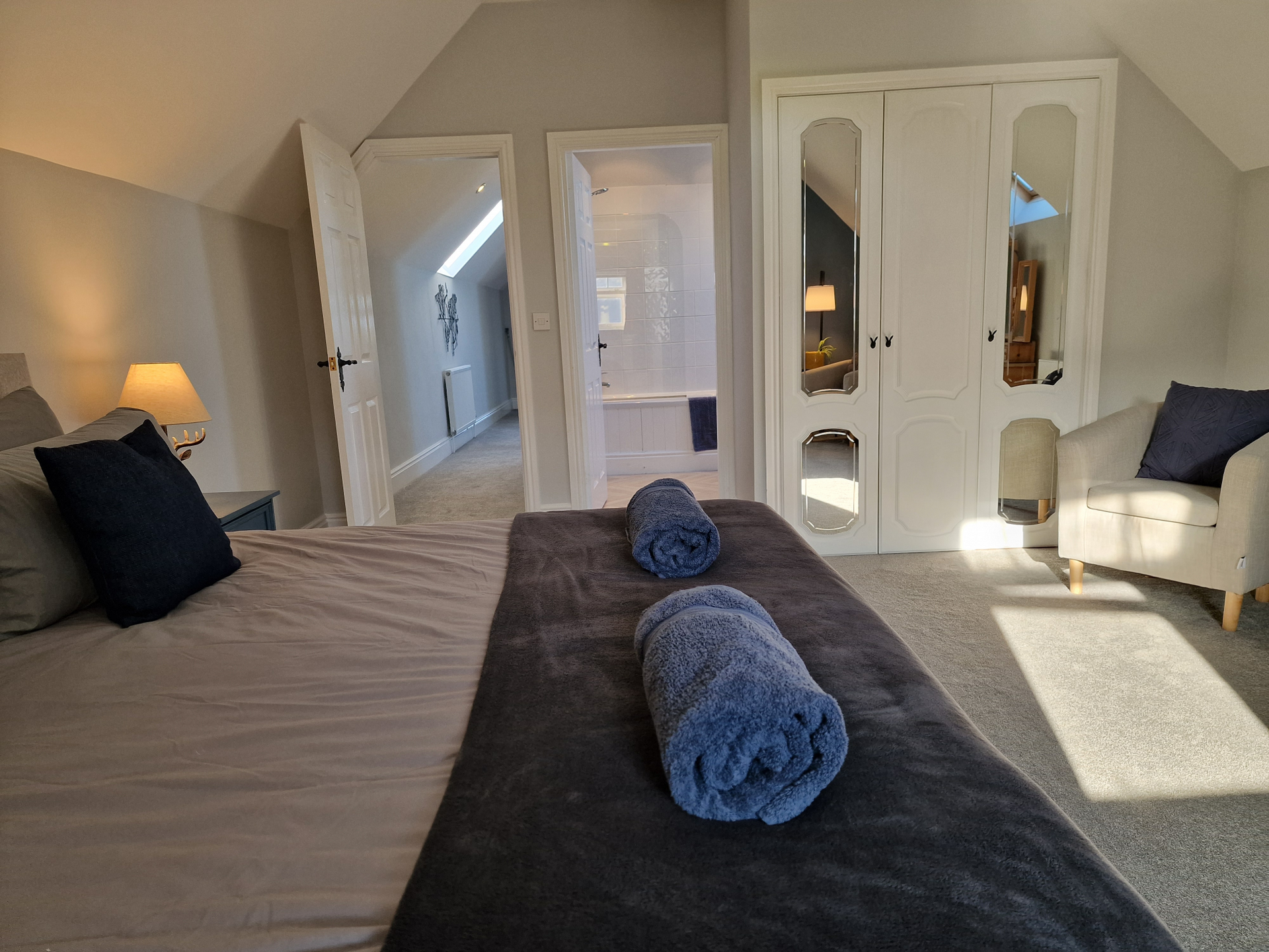 Our 2 Bedroom Loft apartment is our biggest and best. You'll have the whole 2nd floor to yourselves in this spacious apartment. Sit and enjoy food and drinks at the dinning area, with the best views over the park. Secure Parking as standard.
